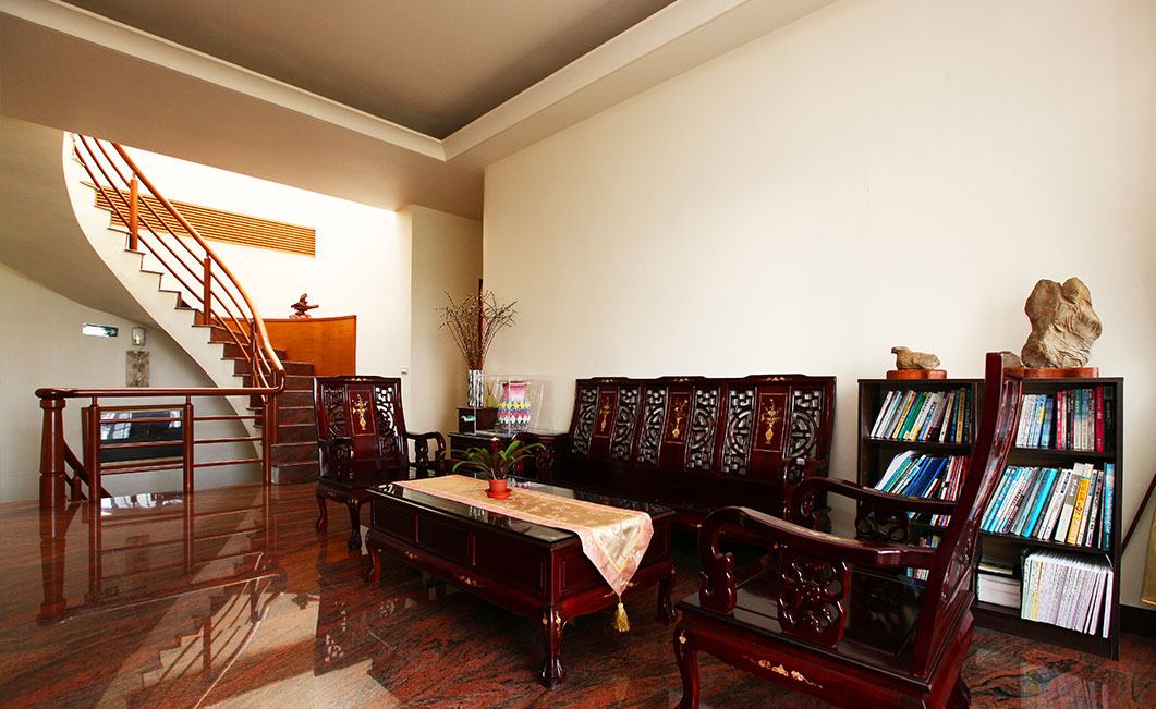 寬廣的庭院在微涼的秋夜裡